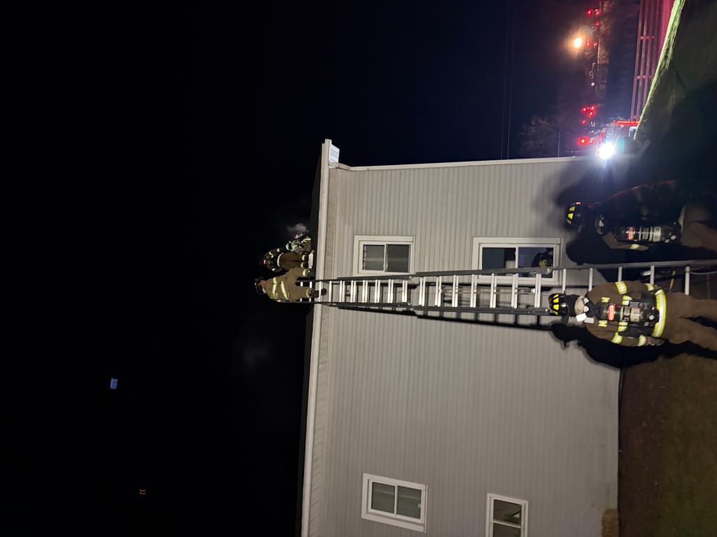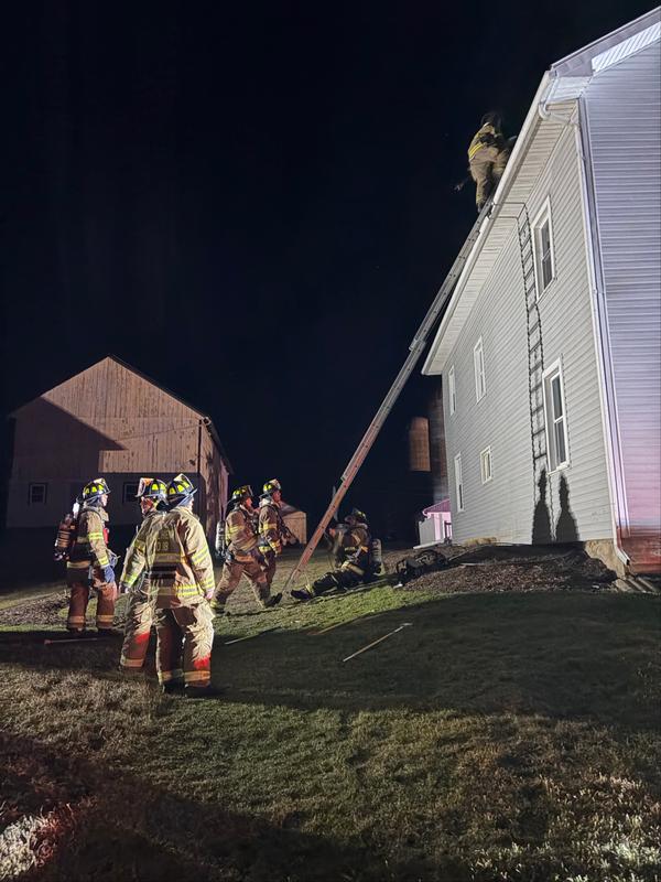 Upon arrival, Engine 19 and the tanker found nothing showing from the outside of the home. Chief 19-2 assumed command. The Engine 19 crew split into two groups: one entered the house with Captain 19-1, removed fire from the wood stove, and used a thermal imaging camera to check for fire inside the walls. The other group began laddering the roof.